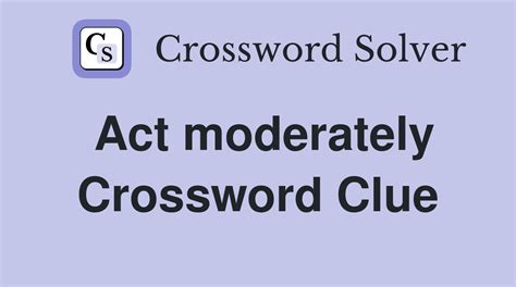 Moderately Crossword Clue. Find the answer to the crossword clue moderate. Moderately may be defined as “ in a.