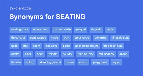 Another Word For Seating. Seating area see also what is the opposite of seating area? On this page you'll find 10 synonyms, antonyms, and words related to seating, such as: