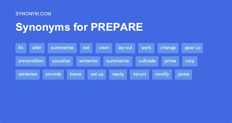 Defense secretary lloyd austin’s assessment that war over taiwan. Web synonyms & similar words relevance readies provides furnishes arranges fortifies equips preps lays fixes fits grooms instructs gathers educates supplies trains schools braces. Web synonyms for prep include prepare, ready, groom, fit, fix, lay, make ready, set, prime and set up. Web find 833 synonyms for prepares and other similar words that you can use instead based on 7 separate contexts from our thesaurus. Web with positive mental attitude, failure is a learning experience, a rung on the ladder, a plateau at which to get your thoughts in order and prepare to try again. Web what is another word for prepare for? Web find 3,783 synonyms for prepare and other similar words that you can use instead based on 26 separate contexts from our thesaurus. Contexts to ready oneself for something challenging or demanding to prepare for an activity verb to ready oneself for something. Web synonyms for prepare (for): Point (for), train (with), perfect, run over, refine, practise, practice, work (at or on), drill, repeat