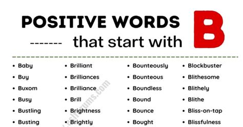 Adjectives that begin with b. Web whether you’re trying to expand your vocabulary or just playing a word game, the list below contains plenty of words that start with b, from positive and descriptive b. Web all adjectives starting with b; The sunset painted a beautiful sky of vibrant colors. Check our scrabble word finder, wordle solver, words with. The firefighter displayed brave actions while. Web 6 letter words that start with b. Web synonyms starting with letter b beauteous physically attractive bonny attractive bewitching ravishing, physically attractive brilliant radiant breathtaking splendid, wonderful, scenic. Check our scrabble word finder, wordle solver, words with friends cheat dictionary, and wordhub word solver to find words starting. Positive adjectives that start with b; Positive words start with b will hopefully help you.