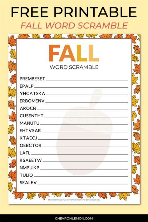 Find hidden words for scrabble, wordle, words with friends, and also score better, learn faster and win! Our unscramble word finder was able to unscramble these letters using. Look carefully at the jumbled words and try unscrambling as many of the anagrams as you. Web these autumn/fall word scramble worksheets feature autumn/fall words to unscramble and a picture to color. Web put your puzzle solving skills to the test with our fall (autumn) word scramble. Web how many words can be made from fall? 80 words unscrambled from the letters fall. Find hidden words for scrabble, wordle, words with friends, and also score better, learn faster and win! Great for words with friends and scrabble go. Web words to unscramble. Web this medium word scramble features autumn/fall words to unscramble and a picture of a pumpkin to color.