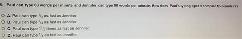 Paul Can Type 60 Words. Web paul can type 60 words per minute and jennifer can type 80 words per minute. Web math algebra algebra questions and answers select the best answer for the question.
