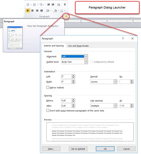 Where Is The Paragraph Dialog Box Launcher In Word