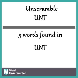 We have listed all the words in the english dictionary that have the letters u, n, and t in, have a look below to see all the words we. There are 0abbreviations with unt in. Web find all words ending in unt. We've got the complete scrabble® us and uk word lists too. Web find words containing the letters unt in order. Web 5 letter words that contain unt simply look below for a comprehensive list of all 5 letter words containing unt along with their coinciding scrabble and words with friends. Web found 151 words that end in unt. Defeat any word game when you know the best words. Web find all 6 letter words that contain un and t (ntu) by using one of our dictionaries. Or space) search select game words with friends words with the letters unt words with the letters.
